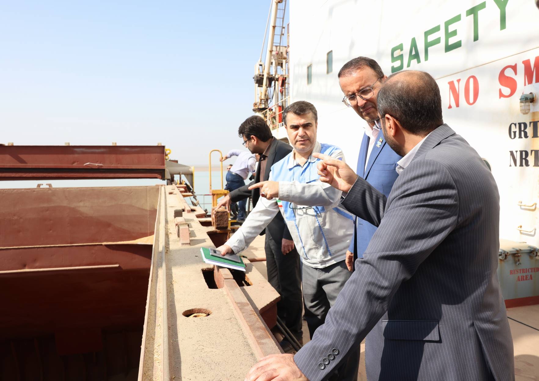 بازدید معاون وزیر و رئیس سازمان دامپزشکی کشور از انبارها و کشتیهای حامل نهادههای دامی در بندر امام خمینی (ره) به روایت تصویر