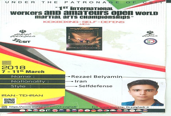 به گزارش روابط عمومی سازمان دامپزشکی کشور طی مسابقات ورزش های رزمی کارگران جهان در سه رشته کیگ بوکسینگ، دفاع شخصی و هنرهای نمایشی با حضور 14 تیم از کشورهای آلمان، پرتقال، لوکزامبورگ، استرالیا، آذربایجان، ارمنستان، سیرالئون، افغانستان، پاکستان، عراق، چین، لبنان، گرجستان و ایران به همت فدراسیون آماتوری ورزش های کارگری که برای نخستین بار در تقویم فدراسیون جهانی ورزش های کارگری(CSIT) گنجانده شده بودبه میزبانی ایران درسالن هندبال مجموعه ورزشی انقلاب در اسفند 96برگزار گردید