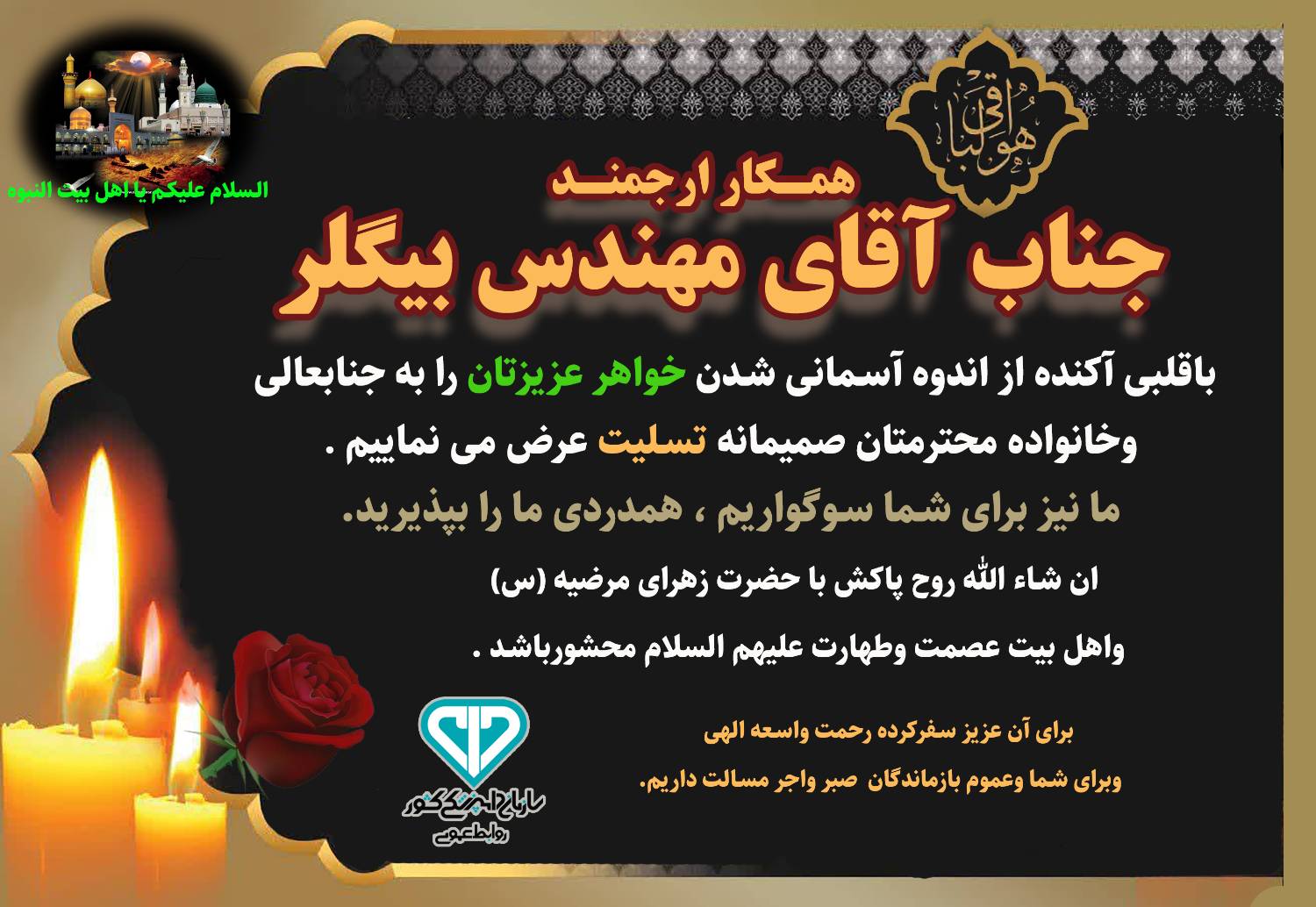 تسلیت به همکار گرامی،جناب آقای مهندس حمید بیگلر
