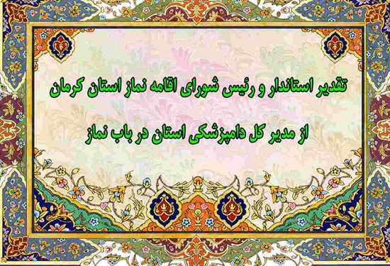 تقدیر استاندار و رئیس شورای اقامه نماز استان کرمان از مدیر کل دامپزشکی استان در باب نماز