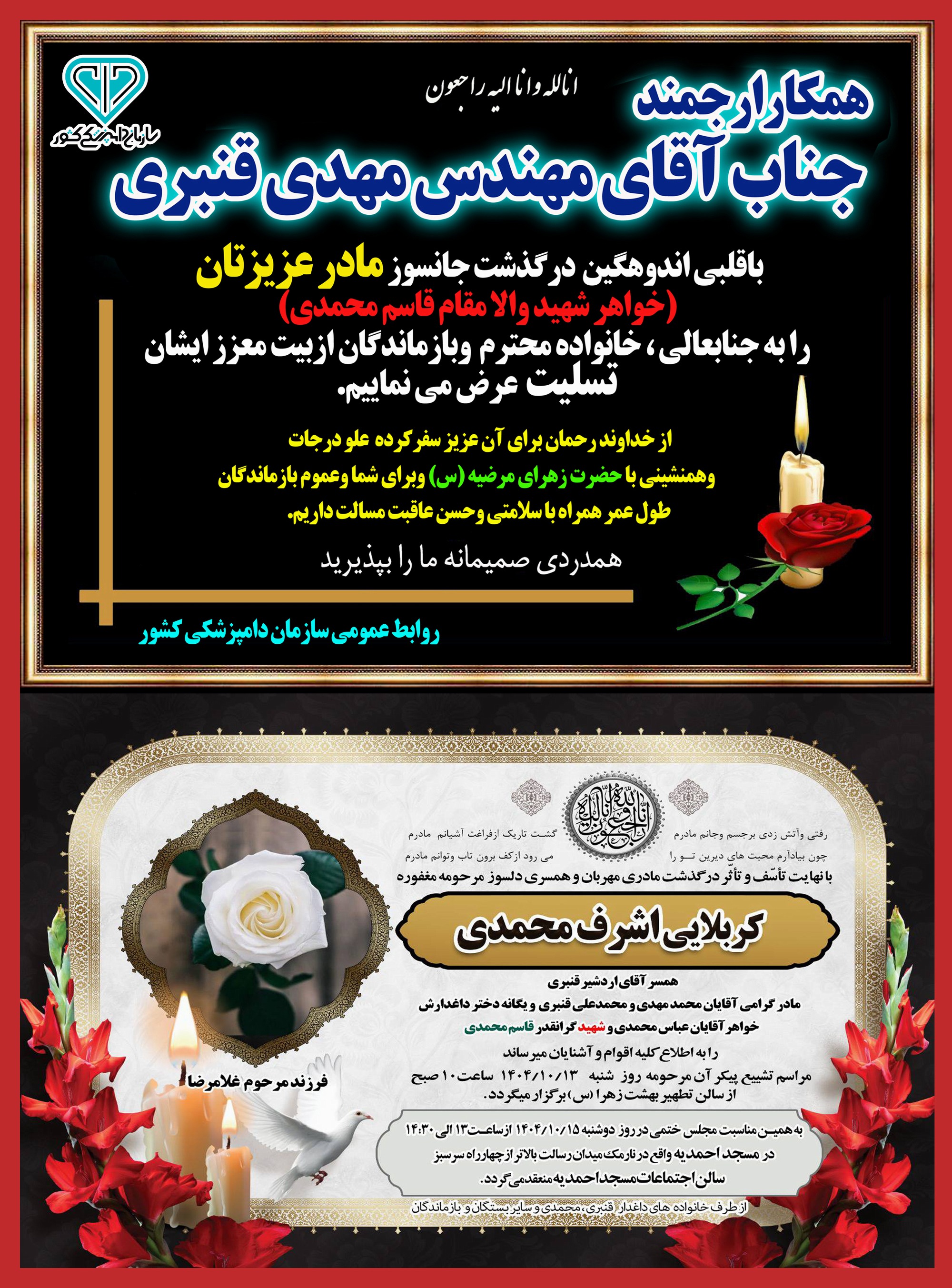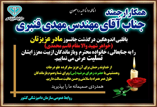 آقای مهدی قنبری همکار شاغل در سازمان دامپزشکی کشور در غم از دست دادن مادر به سوگ نشست