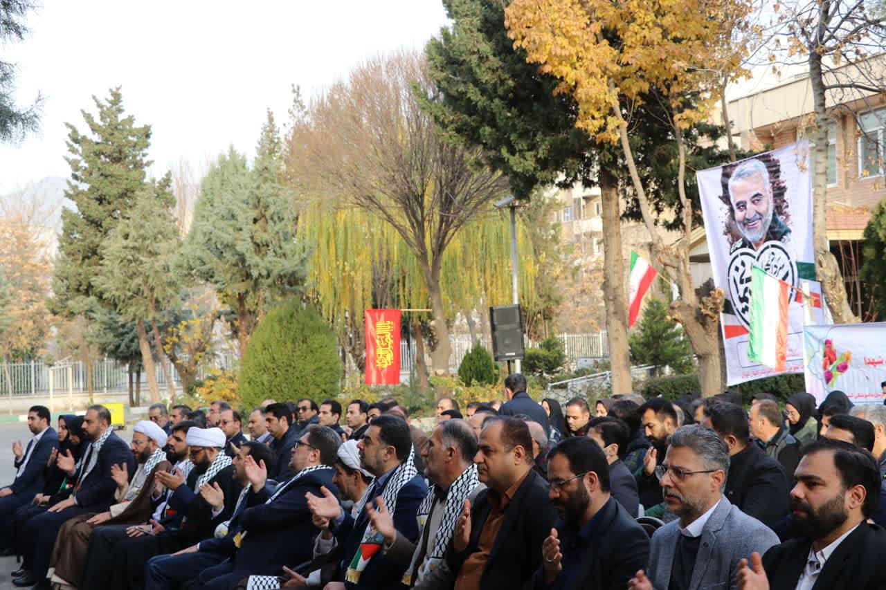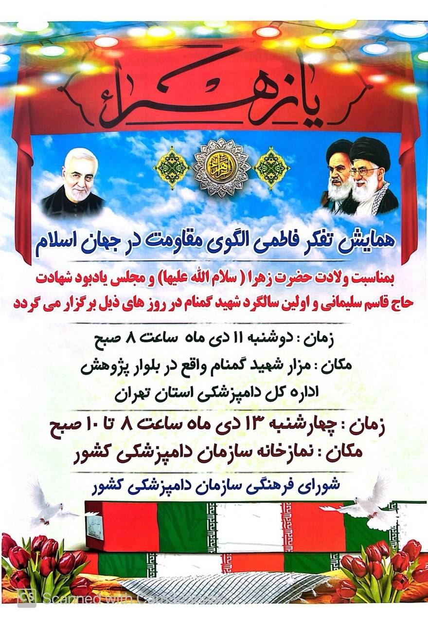 اولین سالگرد شهید گمنام و چهارمین سالگرد یادبود شهادت سردار دلها ، حاج قاسم سلیمانی صبح روز دوشنبه 11 دی ماه 1402 با حضور حجت الاسلام والمسلمین حاج آقا مهدی رنجبران مسئول حوزه نمایندگی ولی فقیه سازمان ، دکتر مهرداد پاکار مشاور وزیر و فرمانده بسیج وزارت جهاد کشاورزی، دکتر فاطمه زارعان مشاور وزیر و رئیس مرکز روابط عمومی و اطلاع رسانی وزارت جهادکشاورزی و جمعی از مدیران سازمان دامپزشکی کشور در مرکز ملی تشخیص این سازمان در کنار مزار شهید گمنام با قرائت پر فیض زیارت عاشورا ، مداحی ، سخنرانی و پذیرایی از طرف همکاران برگزار شد.