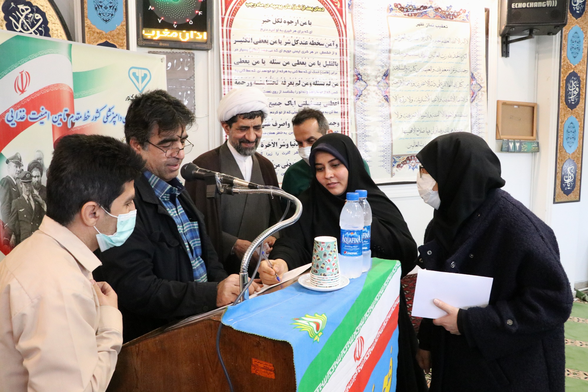 در ادامه مراسم به 5 نفر از شرکت کنندگان در مسابقه کتابخوانی و 12نفر از شرکت کنندگان در مسابقات ورزشی و 10نفر از شرکت کنندگان در مسابقه حضوری پیرامون دهه فجر و حوادث انقلاب هدایائی تقدیم گردید و در آخر از شرکت کنندگان پذیرایی بعمل آمد .