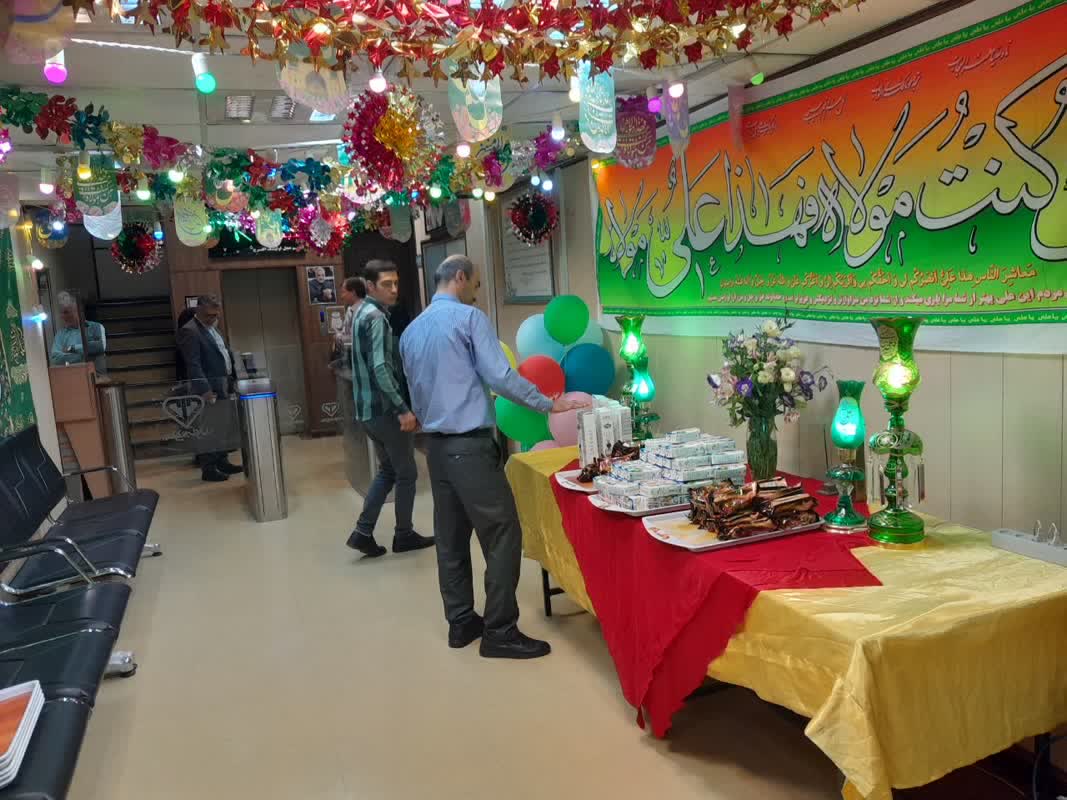 مراسم جشن عید قربان و عید غدیر روزهای سه شنبه و چهارشنبه 13و 14 تیرماه 1402 با حضور همکاران سازمان و مسئولین در نمازخانه سازمان با فضا سازی بیرون و داخل سازمان همراه با مداحی و اجرا گروه تواشی و سخنرانی مسئول حوزه نمایندگی ولی فقیه و صرف صبحانه و شیرینی برگزار گردید .