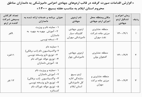 گزارش اردوهای جهادی اداره کل دامپزشکی ایلام